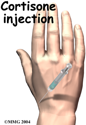 An injection of cortisone into the joint can give temporary relief. Cortisone is a very powerful anti-inflammatory medication. When injected into the joint itself, it can help relieve the pain. Pain relief is temporary and usually only lasts several weeks to months. There is a small risk of infection with any injection into the joint, and cortisone injections are no exception.