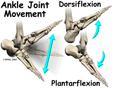 The talus works like a hinge inside the socket to allow your foot to move up (dorsiflexion) and down (plantarflexion).