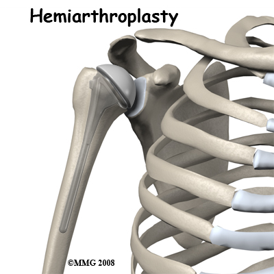 In severely shattered fractures of the neck of the humerus the blood supply of the head of the humerus is lost and the bone supporting the joint surface will die. In this situation a decision to do an artificial joint operation may be made. The head fragment is removed and replaced with a metal implant that is fixed inside the shaft of the humerus and has a rounded "head" the same size and shape as the natural one. The remaining fragments are fixed back to the implant and the shaft of the humerus. When this heals the shoulder should be free from pain and have an acceptable range of movement.