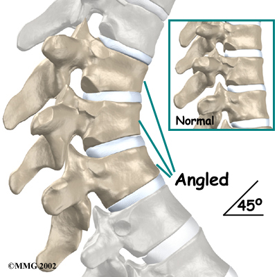 Mounting evidence suggests wedging develops as the vertebral body grows. During normal growth, the cartilage around the vertebral body develops evenly and completely into bone. If the change from cartilage to bone doesn't happen evenly, one side of the vertebral body grows at a faster rate. By the time the entire vertebral body turns to bone, one side is taller than the other. This is the wedge shape that leads to the abnormal kyphosis.