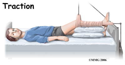 When lack of motion has become a problem, the child may be admitted to the hospital and placed in traction. Traction is used to give the joint some space and therefore quiet the inflammation. The rest for the joint while in traction also helps to settle the inflammation. Settling the inflammation usually takes about a week. Home traction may also be an option.