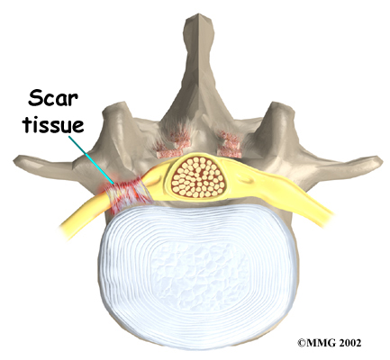 Any surgery that is done near the spinal canal can potentially cause injury to the spinal cord or spinal nerves. Injury can occur from bumping or cutting the nerve tissue with a surgical instrument, from swelling around the nerve, or from the formation of scar tissue. An injury to these structures can cause muscle weakness and a loss of sensation to the areas supplied by the nerve.