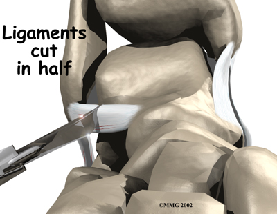 In this procedure, an incision is made in the skin that lies over the lateral ligaments. Using a scalpel, the surgeon cuts the ATFL and CFL in half.