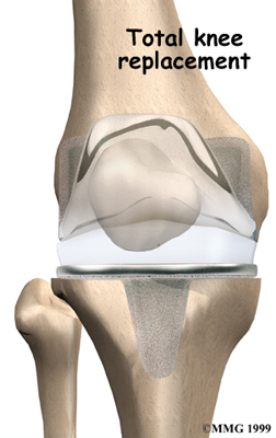 An artificial knee replacement is the ultimate solution for advanced knee OA.