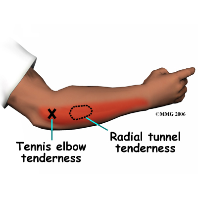 Tennis elbow symptoms are very similar to a condition called radial tunnel syndrome, a condition caused by pressure on the radial nerve as it crosses the elbow. If your pain does not respond to treatments for tennis elbow, your doctor may suggest tests to rule out problems with the radial nerve.