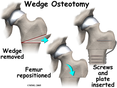 The preferred method for stopping the epiphysis from slipping further is to place a large screw into the epiphysis to hold it in place. This screw is placed using a special X-ray machine called a fluoroscope. The fluoroscope allows the surgeon to see an X-ray image on a TV monitor while doing the surgery. In this way, the surgeon is able to accurately place a screw into the epiphysis using a small incision in the side of the thigh.