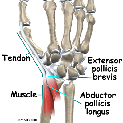 near the end of the radiusbone of the forearm. The tunnel helps hold the tendons in place, like the guide on a fishing pole.