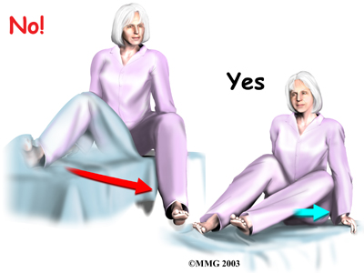 - Don't bend the hip past ninety degrees. This means do not lean too far forward when sitting up in bed.