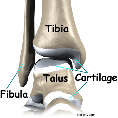 The ankle joint is formed by the connection of three bones. The ankle bone is called the talus. The top of the talus fits inside a socket that is formed by the lower end of the tibia (shinbone) and the fibula (the small bone of the lower leg). The bottom of the talus sits on the heelbone, called the calcaneus.