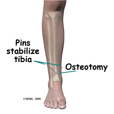A derotational osteotomy requires the surgeon to cut the bone, rotate it to improve the alignment and hold the bones in that position while they heal. Some type of metal hardware is generally used to hold the bones in place until they heal.