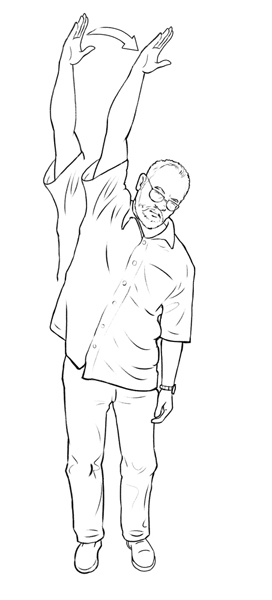 Small movements and regular shifts in body weight can help your body maintain circulation throughout the body during driving. In addition, it is important to get out of the vehicle on a regular basis for a quick walk and stretch break. For example, for every 2 hours spent in the drivers seat, get out and have a two minute walk around the vehicle followed by stretching as shown below. You may need more frequent breaks if you are uncomfortable, or have a history of musculoskeletal problems that are aggravated by driving.