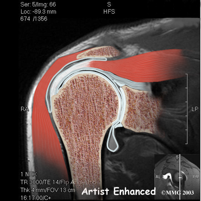 Your doctor may order X-rays to look for an abnormal acromion or bone spurs around the AC joint. A magnetic resonance imaging (MRI) scan may be performed if your doctor suspects a tear of the rotator cuff tendons. An MRI is a special imaging test that uses magnetic waves to create pictures that show the tissues of the shoulder in slices. The MRI scan shows tendons as well as bones. The MRI scan is painless and requires no needles.