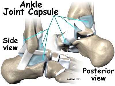 The ligaments that surround the ankle joint help form part of the joint capsule. A joint capsule is a watertight sac that forms around all joints. It is made up of the ligaments around the joint and the soft tissues between the ligaments that fill in the gaps and form the sac.