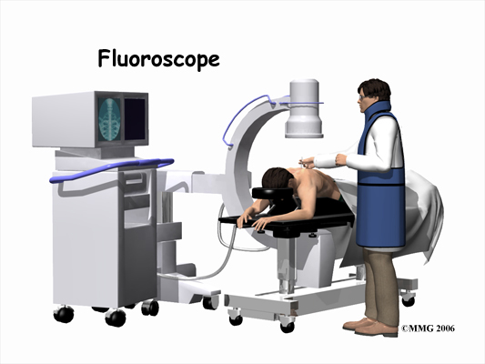 Most injection procedures today are done with the help of fluoroscopic guidance. The fluoroscope is an x-ray machine that allows the doctor to actually see an x-ray image while doing the procedure. This allows the doctor to watch where the needle goes as it is inserted and makes the injection much safer and more accurate.