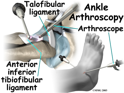 Debridement is the most common surgery for anterior ankle impingement. Many surgeons prefer to perform this procedure with an arthroscope. An arthroscope is a tiny TV camera that can be inserted into a very small incision. It allows the surgeon to see the area where he or she is working on a TV screen.