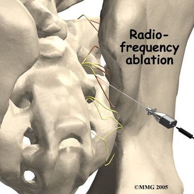 Another procedure that has been somewhat successful for chronic SI joint pain is called radiofrequency ablation. After a diagnostic injection has confirmed that the pain is coming from the SI joint, the small nerves that provide sensation to the joint can be "burned" with a special needle called a radiofrequency probe. In theory, this destroys any sensation coming from the joint, making the joint essentially numb. Unfortunately this procedure is not always successful. If it does help, it is temporary but can last for up to two years and can be repeated if needed.
