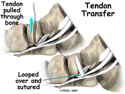 A badly degenerated or a ruptured tendon may require a tendon graft. Usually, another tendon in the foot, such as the tendon that flexes the four smaller toes (the flexor digitorum longus), is used as a tendon graft to work in place of the posterior tibial tendon.