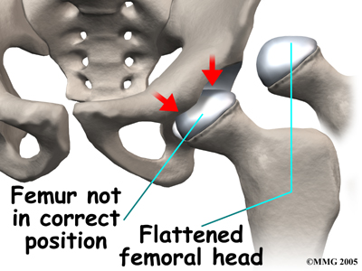 Whatever the true cause of ischemia (lack of blood to the area), the result is bone death (called necrosis) of the femoral head. Without a normal blood supply, the bone loses its strength and shape. The loss of bone density and softening of the head result in a femoral head that is misshaped. With the hip supporting the weight of the body, tiny microfractures in the soft, necrotic bone fail to heal. This is another reason why normal wear and tear results in a deformity.