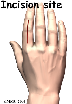 An incision is made on the back part of the finger over the surface of the joint that is to be fused. Special care is taken not to damage the nearby nerves going to the finger. The joint capsule surrounding the finger joint is then opened so that the surgeon can see the joint surfaces. The articular cartilage is removed from both joint surfaces to leave two surfaces of raw bone. The bottom of the phalange is hollowed with a special tool to form a socket. The other surface is shaped into a rounded cone that fits inside the socket.