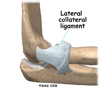 In the elbow, two of the most important ligaments are the medial collateral ligament (MCL) and the lateral collateral ligament (LCL). The MCL of the elbow is on the inside edge, and the LCL is on the outside edge. Together these two ligaments connect the humerus to the ulna and keep it tightly in place as it slides through the groove at the end of the humerus and bends the elbow. These ligaments are the main source of stability for the elbow. They can be torn when there is an injury to or dislocation of the elbow. If they do not heal correctly the elbow can be too loose, or unstable.
