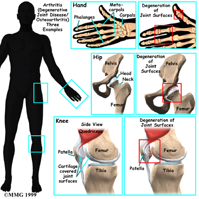 In some types of arthritis, the cause of the disease is known, but in others it is still unknown. Some types of arthritis come on suddenly, and others develop slowly. Any joint can be affected, including the joints of your back, neck, knees, hips, shoulders, and fingers.