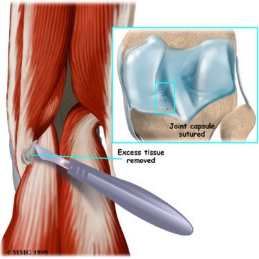 A synthetic patch may be sewn in place to cover the hole in the joint capsule left by the removal of the cyst.