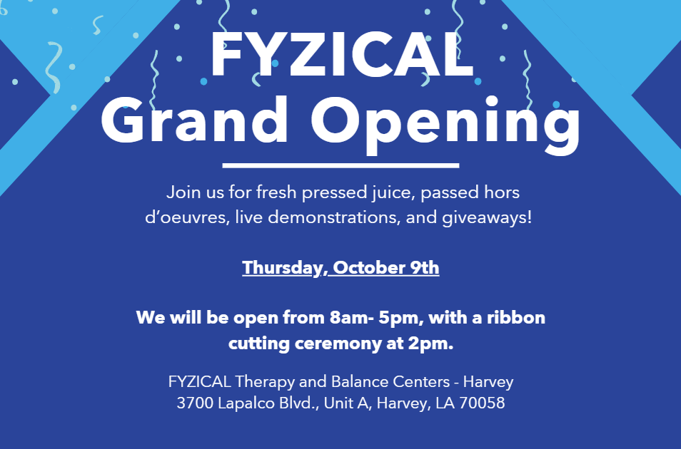 FYZICAL Harvey is unlike any therapy clinic you've been to before. At FYZICAL Harvey, our highly skilled, compassionate team of physical therapists are 100% focused on achieving optimal health and wellness for you so you can get back to living the life you enjoy.