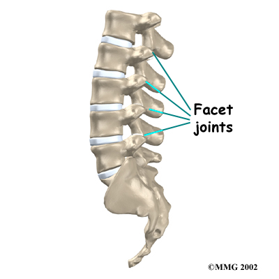The spinal segment is connected by two facet joints, described earlier. When the facet joints of the lumbar spine move together, they bend and turn the low back.