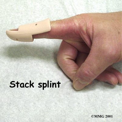 recommendation for the type that will be most beneficial to your recovery. There are many splints that have been designed to make it easier to wear at all times. In some extreme cases where the patient has to use the hands to continue working (such as a surgeon), a metal pin can be placed inside the bone across the DIP joint to act as an internal splint allowing the patient to continue to use the hand. The pin is removed at six weeks.