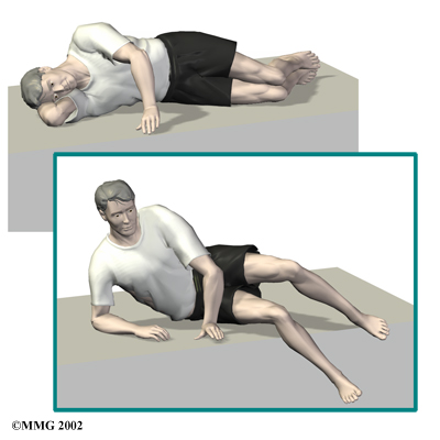 When you begin physical therapy at FYZICAL Johns Creek, we may prescribe ways to immobilize the spine. Keeping the back still for a short time can calm inflammation and pain. Patients may find that curling up to sleep or lying back with their knees bent and supported gives the greatest relief. These positions flex the spine forward, which widens the spinal canal and can ease symptoms.