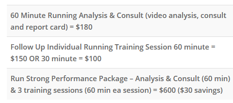 Run Strong Training Program Pricing