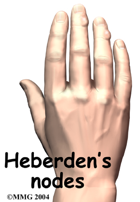 Both forms of arthritis can cause enlarged areas over the back of the PIP joints. These areas tend to be sore and swollen. They are known as Bouchard's nodes.