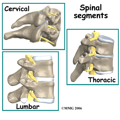 There are two facet joints between each vertebrae of the spine. The facet joints are located at different angles in each of the cervical, thoracic and lumbar spines. This allows different movements to occur in each of these areas. Facet joint injections can be done in any of these areas of the back but the discussion here will focus mainly on those done for the lumbar spine.