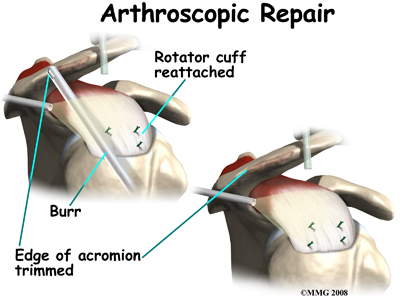 In the past, repair of the rotator cuff tendons usually required an open incision three or four inches in length. As surgeons have become more comfortable using the arthroscope to work in and around the shoulder joint, things have changed. Today, it is much more common to repair tears of the rotator cuff using the arthroscope.