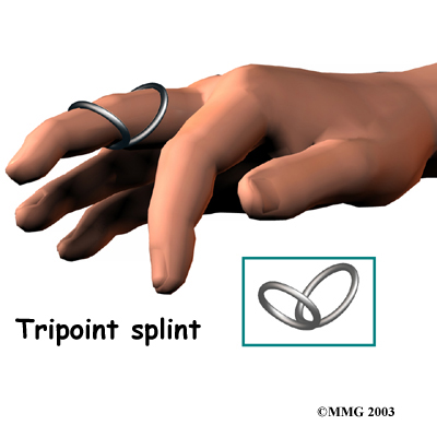 Our physical therapist may have you wear a special splint to keep the PIP joint lined up, protect the joint from hyperextending, and still allow the PIP joint to bend. Newer styles are shaped like jewelry rings and are available in stainless steel, sterling silver, or gold. This approach works best for mild cases of swan neck deformity in which the PIP joint is supple.