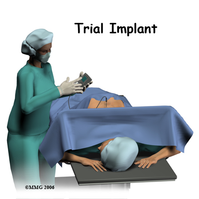 Both the trial implantation and the permanent implantation procedures usually take place in an operating room, either in a hospital or in a day surgery facility. An operating room is a sterile environment that decreases the risk of infection. Each procedure may last up to three hours. You should be able to go home the same day.