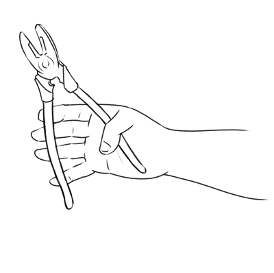 The tool handle should allow you to comfortably and safely grip and use the tool. With the exception of tools used for precision work, the shape of the handle should be designed for a "power grip". This means that your wrist is in a neutral position, with all the fingers grasping the handle. In this position, the muscles used for gripping are able to work most efficiently and are less prone to fatigue and injury. Tools applied with a horizontal force should have a bent handle, so that you don't need to excessively bend your wrist. Tools applied with a vertical force should have a straight ("in-line") handle.