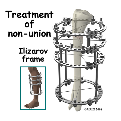 In really difficult cases, the Ilizarov technique may be used. The nonunited segment of bone is removed and freshened ends of normal bone are held together with an external frame. A second cut is made in the normal bone higher up the leg and the frame is used to lengthen the bone over time.