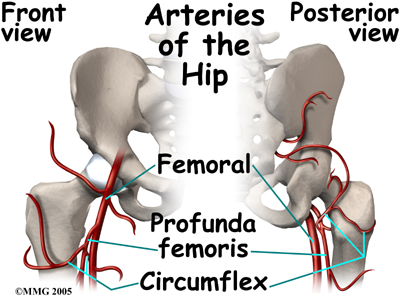 The blood vessels that go to the epiphysis run along the side of the femoral neck and are in danger of being torn or pinched off if something happens to the growth plate. This can result in a loss of the blood supply to the epiphysis.
