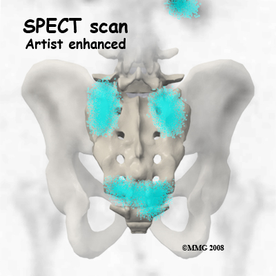 Single Photon Emission Computed Tomography (SPECT) is a new, advanced diagnostic nuclear medicine procedure that uses the emission of a radioisotope that is carried in the blood to the tissues. SPECT imaging is often added to provide information that is not available on routine bone scan images. It provides three-dimensional (3-D) views of the area examined. Following a bone scan you will remain on the exam table and the camera will rotate around the table while it takes pictures. SPECT imaging adds 30 to 60 minutes to the time of the nuclear scan. Sedation may be needed.