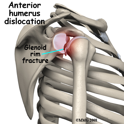 Fractures of the glenoid occur due to the same type of force that fractures the neck of the glenoid. More commonly, a glenoid fracture occurs when the shoulder dislocates and a fragment of the joint goes with it. A fracture involving the glenoid results in an irregular portion of the joint surface. Unless the joint surface is perfectly aligned after the dislocation is back in joint, the fragments are usually treated by surgery (ORIF). Some surgeons may elect to manage this fracture with arthroscopic surgery.