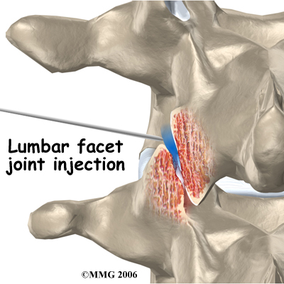 When dealing with a chronic painful spine condition pain specialists commonly use facet joint injections. These injections are primarily diagnostic injections, meaning that they help your doctor determine the cause of your back pain but they can also help to treat the painful condition, although they may not provide you with any long-term relief. Facet joint injections eliminate pain temporarily by filling the facet joint with an anesthetic medication that numbs the joint, the ligaments, and the joint capsule around the facet joint. If the facet joint is injected and your pain goes away for several hours, then it indicates to your doctor that it is very likely the joint or its closely related tissues that are causing your pain. Once you and your doctor know what structure is causing your pain, you can begin to explore options for treating the condition.