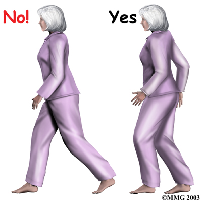 Don't stretch your hip back. Walk with short steps. Taking a longer step when leading with your nonoperated hip stretches the surgical hip back.