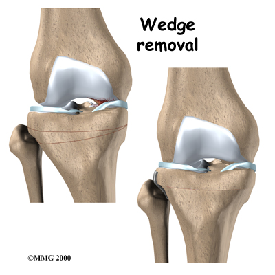 Surgery to realign the angles in the lower leg can help shift pressure to the other, healthier side of the knee. The goal is to reduce the pain and delay further degeneration of the medial compartment.