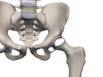 Realignment of the femur is called a femoral osteotomy. This procedure changes the angle of the femoral neck so that the femoral head points more towards the socket. To perform this procedure, an incision is made in the side of the thigh. The bone of the femur is cut and realigned in a new position. A large metal plate and screws are then inserted to hold the bones in the new position until the bone has healed. The plate and screws may need to be removed once the bone has healed.