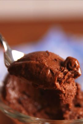 This delicious ice cream is made with bananas, maple syrup, cocoa powder, semi-sweet mini chocolate chips, kosher salt, and water.