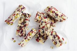 This recipe combines a wide variety of healthy ingredients such as cacao, coconut oil, coconut milk, vanilla bean paste, oranges, craisins, pistachios, macadamias, goji berries and several others. This dessert is a powerhouse of nutrients from antioxidants to minerals as well as fiber and numerous vitamins. Try this delicious Christmas treat today!