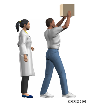 Our physical therapist will also work with you on how to move and do activities. This form of treatment, called body mechanics, is used to help you develop new movement habits. This training helps you keep your neck in safe positions as you go about your work and daily activities. At first, this may be as simple as helping you learn how to move safely and easily in and out of bed, how to get dressed and undressed, and how to do some of your routine activities. Then we'll teach you how to keep your neck safe while you lift and carry items and as you begin to do heavier activities.