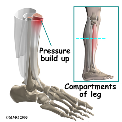 If the pressure continues to rise, it can squeeze the larger blood vessels and nerves as well. Patients may feel coldness, numbness, and swelling in the lower leg and foot. If pressure builds up and is not treated, it can cause serious tissue damage in the leg and foot.
