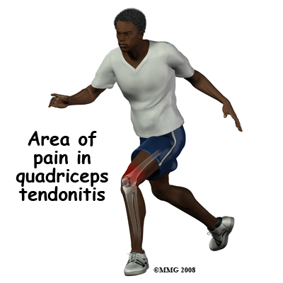 These problems can affect people of all ages but the majority of patients with overuse injuries of the knee (and specifically quadriceps tendonitis) are involved in soccer, volleyball, or running activities.